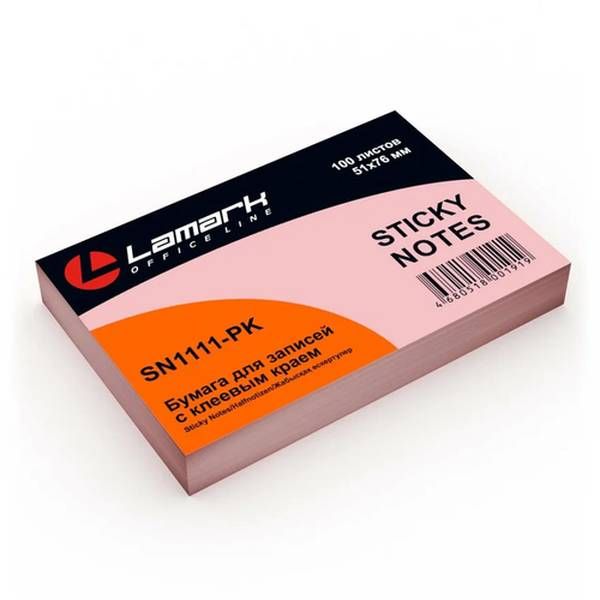 Бумага для заметок Lamark с клеевым краем, цвет розовый пастельный. В блоке 100 листов. Размер 51x76 мм. Листы надежно крепятся на любые поверхности и при удалении не оставляют следов.