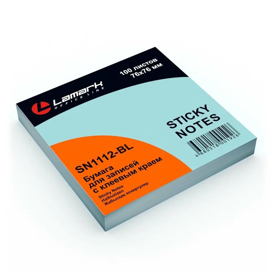 Бумага для заметок Lamark с клеевым краем, цвет голубой пастельный. В блоке 100 листов. Размер 76x76 мм. Листы надежно крепятся на любые поверхности и при удалении не оставляют следов.