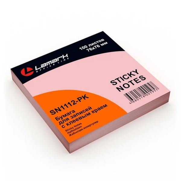 Бумага для заметок Lamark с клеевым краем, цвет розовый пастельный. В блоке 100 листов. Размер 76x76 мм. Листы надежно крепятся на любые поверхности и при удалении не оставляют следов.