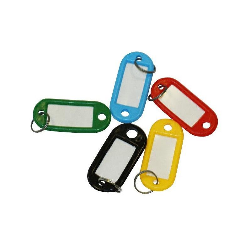 Пластиковая бирка для ключей с металлическим колечком. Бумажная этикетка, зафиксированная в рамке, защищена прозрачной пластиковой плёнкой.