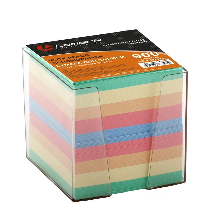 Бумага для записи Lamark в прозрачном пластиковом боксе, цветная. Размер листа 90х90 мм, 900 листов, плотность 80 г/м2 в термопленке.