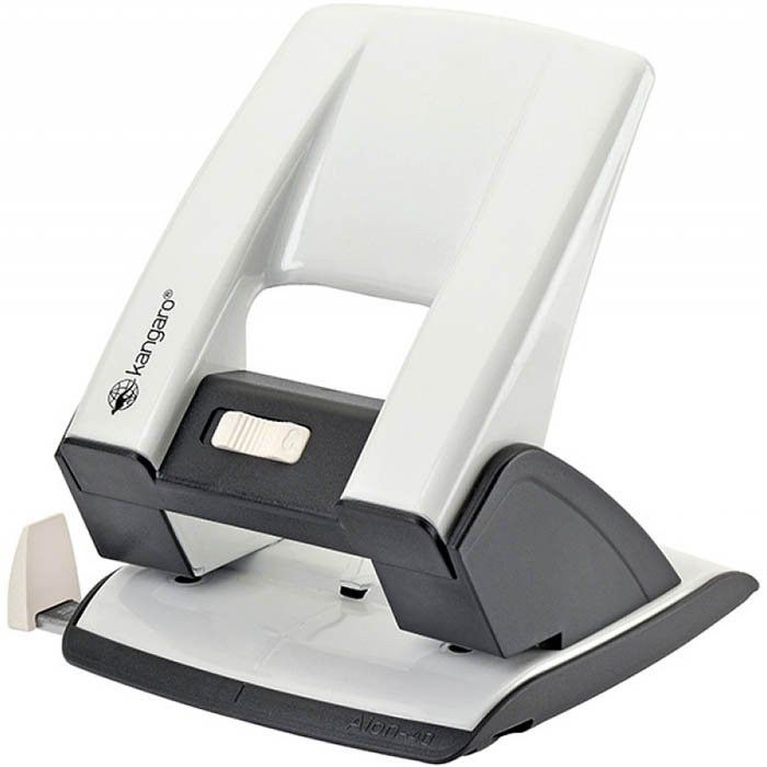 Дырокол Kangaro Aion-40 изготовлен из металла. Имеет съемный пластиковый контейнер, предохраняющий поверхность стола от царапин. Пластмассовая выемка на резервуаре позволяет легко отделять и очищать его.