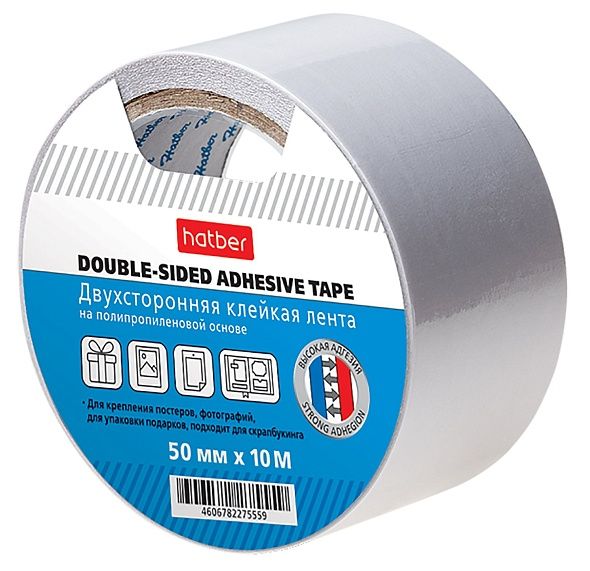 Клейкая двусторонняя Лента Hatber 50ммх10м на полипропиленовой основе