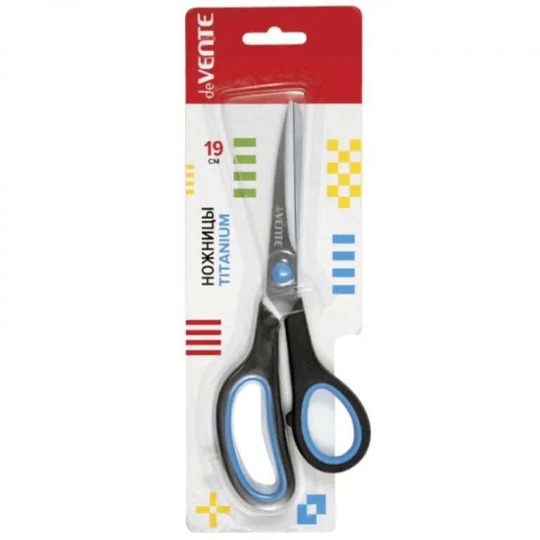 Ножницы канцелярские «deVENTE. Titanium» 19 см, лезвия из нержавеющей стали с титановым покрытием, двухцветные прорезиненные кольца, в картонном блистере
