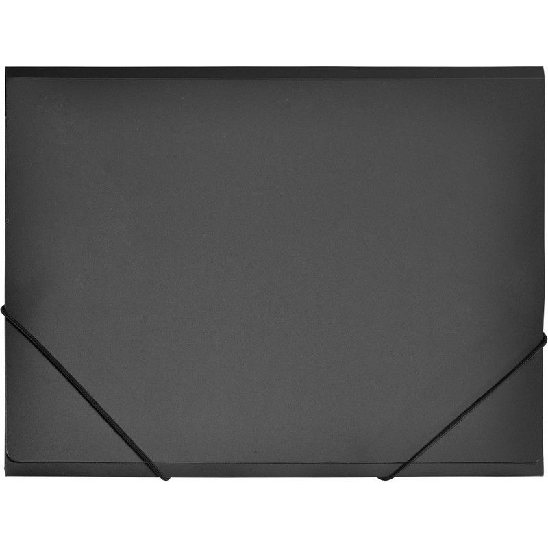 Папка предназначена для хранения документов. Изготовлена из пластика толщиной 0,45 мм. Закрывается при помощи двух угловых резинок. Снабжена тремя клапанами. Ширина корешка - 35 мм. Формат А4. Цвет - чёрный.