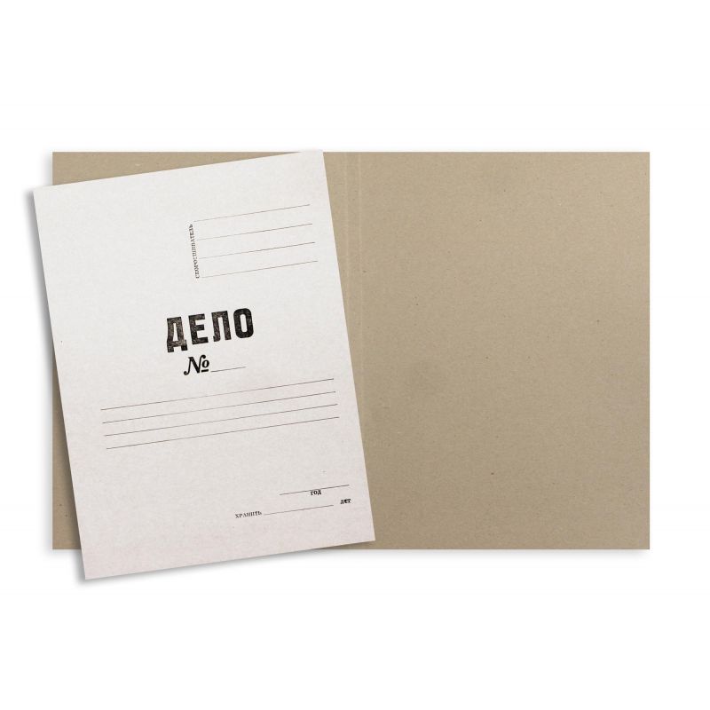 Папка-обложка 'Дело № формата А4 изготовлена из мелованного картона белого цвета плотностью 380 г/кв. м. Без скоросшивателя и завязок, упаковка из 10 штук. На лицевой стороне есть поля для подписывания. Вместимость - до 200 листов. Размер изделия - 220x20x310 мм. Картон - экологически чистый и пригодный для переработки материал.