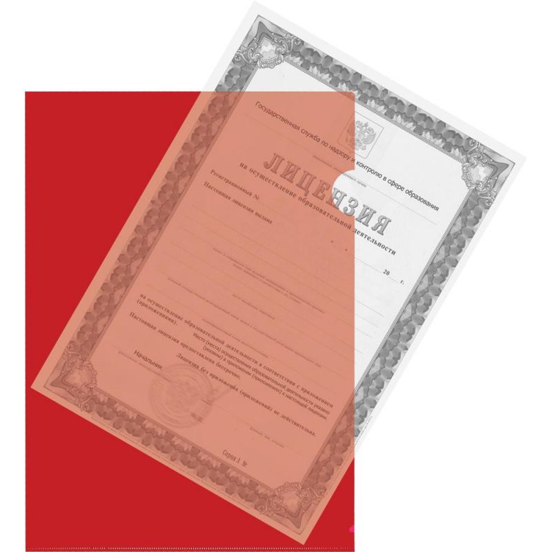 Папка-уголок формата А4 изготовлена из прозрачного полипропилена плотностью 180 мкм, красного цвета. 10 штук в упаковке. Вмещает до 40 листов. Позволяет удобно хранить и переносить документы, предотвращает их смятие и загрязнение. Папка имеет выемку для удобного извлечения листов.