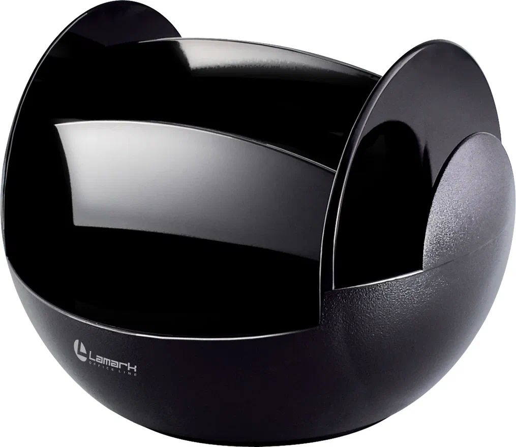 Подставка для канцелярских принадлежностей Lamark Berlin сферической формы выполнена из высококачественного пластика, снабжена поворотной платформой на 360 град. для удобства пользования. Цвет черный. Поставляется в цветной картонной коробке.