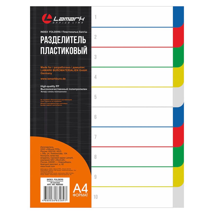 Разделитель А4, 10 цветный «LAMARK», пластик/25