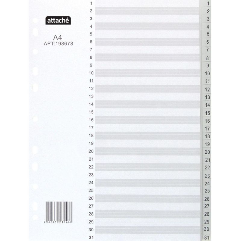 Разделитель А4 цифр. 1-31 «Attache», сер. пластик/