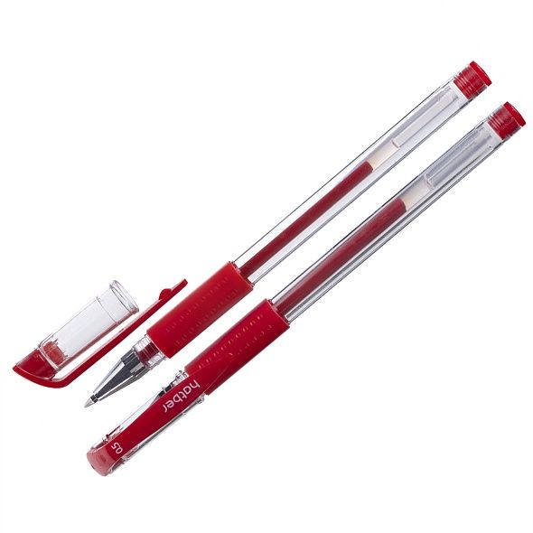 РУЧКА Hatber гелевая Test Красная 0,5мм с резиновым грипом 12шт.