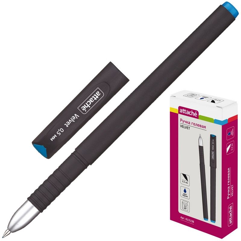 Ручка гелевая неавтоматическая Attache Velvet изготовлена из особого пластика soft-touch, приятного на ощупь. Ручка обеспечивает легкое и мягкое письмо. Чернила быстро высыхают, не размазываются. На корпусе отмечена удобная зона для захвата. Ручка имеет круглый корпус черного цвета. Детали ручки синего цвета соответствуют цвету чернил. Сменный стержень длиной 129 мм позволит использовать ручку максимально долго. Имеет стандартный наконечник. Диаметр пишущего узла, равный 0,5 мм, создает линию письма, равную 0,5 мм. Цвет чернил: синий. Особый акцент этой ручке придает современный дизайн.