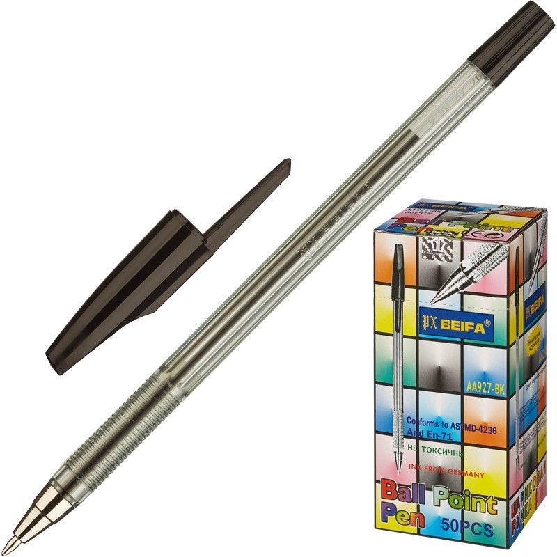 Шариковая ручка Beifa с пастообразными чернилами черного цвета. Корпус выполнен из прозрачного пластика. Металлический шарик в стержне диаметром 0,7 мм, толщина линии письма 0,5 мм. Длина стержня -14 см. Товар относится к сегменту 'эконом'. Это оптимальное соотношение стоимости и качества для тех, кто хочет сэкономить.