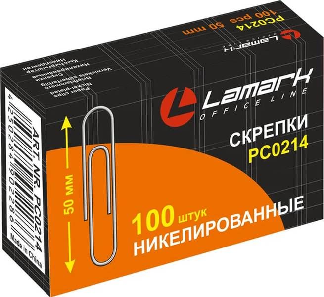Скрепки 50 мм никел. LAMARK (100шт), карт.уп.