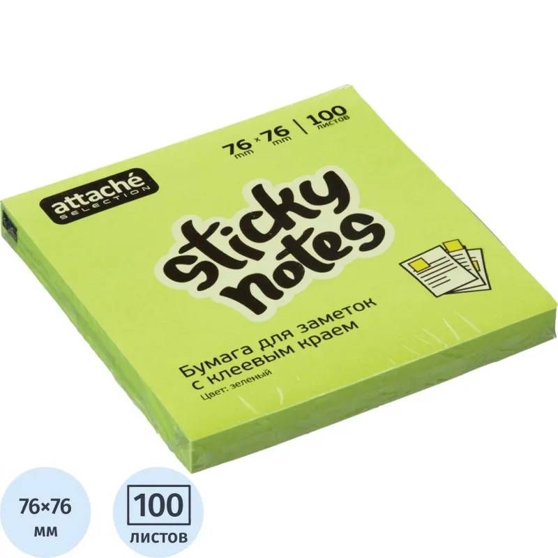 Стикеры Attache Selection в формате 76x76 мм, зеленого цвета, 100 листов. Идеально подойдут для сотрудников творческих профессий и руководителей: рекомендуются для использования в процессе совещаний, обучения, мозговых штурмов. Тон стикеров - неоновый. Плотность бумаги: 75-80 г/кв.м. клейкий слой - 22 Н/м. Длина клейкой стороны 76 мм. После удаления бумаги на поверхности не остается следов клеевого состава, лист можно крепить повторно. Особых условий хранения не требует, сертификации не подлежит, срок годности не ограничен. Чтобы увеличить срок службы стикеров, пожалуйста, следуйте рекомендациям: 1) Отделять стикер от блока следует вдоль клеевой полосы. Так можно избежать скручивания и последующего отклеивания стикера. 2) Прежде чем наклеивать стикер, убедитесь в отсутствии грязи и пыли на поверхности. На чистой поверхности срок службы клеевого слоя более продолжителен.