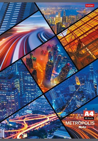 Тетрадь 48л А4ф клетка на скобе серия -Метрополис-